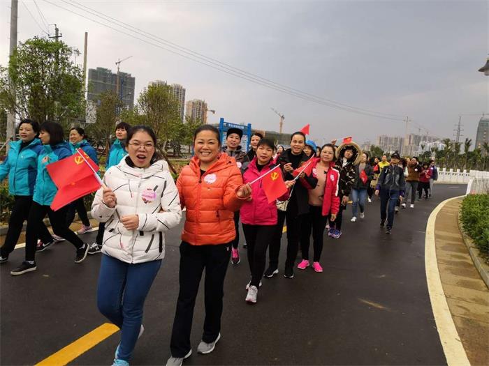 2018年3月8日上午,“巾幗心向黨·踏上新征程”市直機關女干部“環湖健身走”活動在愛蓮湖公園舉行,義芳副市長參加該項活動,并作了講話,市委副書記鐘得志宣布活動開始,來自市直各單位、國資委系統以及賀州學院等單位共550名女職工從市文化中心前廣場出發,進行全程約3.8公里的環湖健步走活動。我集團公司楊麗霞等10名女職工參加了該項活動,全面展示了我集團公司女職工良好的精神風貌。