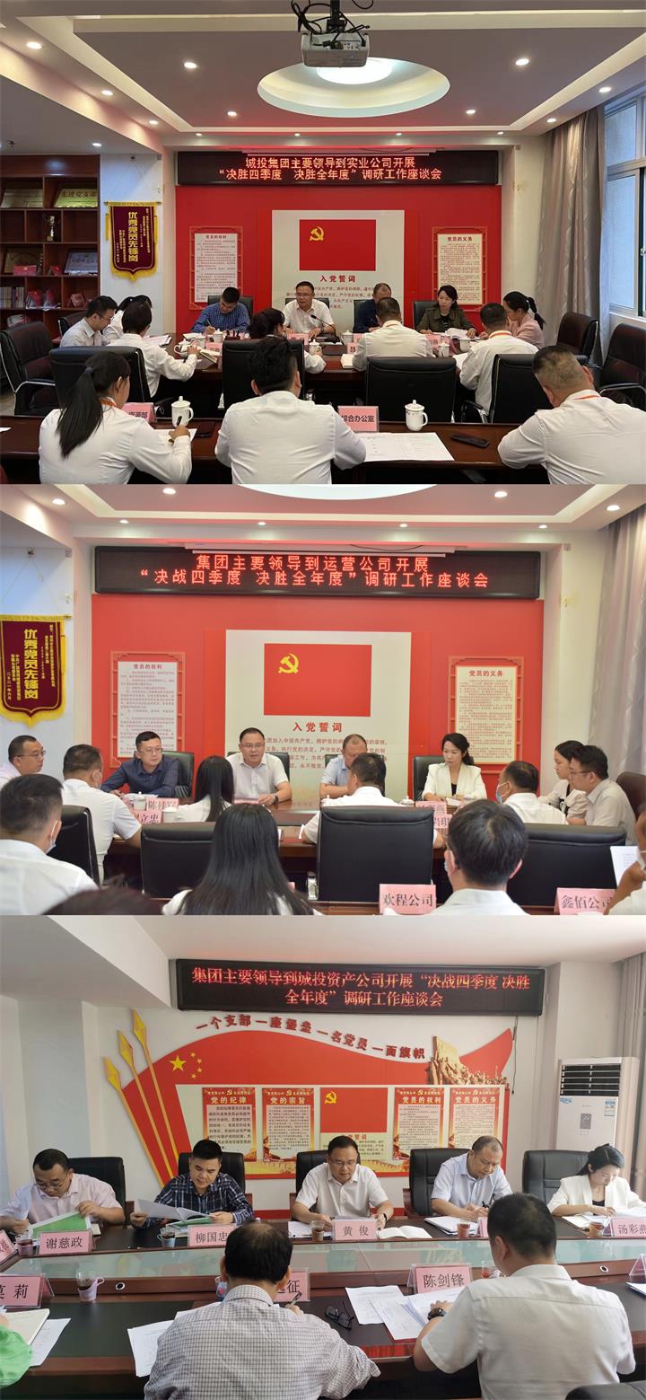 就做好四季度工作,黃俊要求,一要切實加強班子建設和干部隊伍建設。各子公司領導班子成員之間要在共識中求團結,在信任中求融洽。大事講原則,小事講風格,相互尊重、相互諒解,自覺維護班子的團結。要抓好干部隊伍建設,提升干事創業激情,打造一支想干事、能干事、干成事的干部隊伍。二要全面完成經營業績考核指標。經營指標是檢驗工作成效的重要標尺,企業搞得好不好,關鍵還是看經營指標。各子公司要以時時放不下心的緊迫感,強化經營理念,把各項經營指標抓在手上,壓實責任,強化舉措,確保不折不扣完成集團下達的年度經營目標任務。三要統籌抓好各項重點工作落實。各子公司要聚焦工作重點,統籌抓好“六大板塊業務”拓展、建市20周年項目和重大項目、項目策劃包裝、融資化債、招商引資、資產注入盤活、審計問題整改等重點工作,確保各項重點工作落細落實落到位。四要扎實推進黨建工作和清廉企業建設工作。要學習好、宣傳好、貫徹好黨的二十大精神,強化思想政治引領,推動高質量發展取得新成效。要全面完成基層黨建“五基三化”內容,持續增強基層黨組織政治功能和領導力、組織力、執行力。要深入開展“城投清風”七大專項行動,著力打造特色清廉品牌,營造政治生態清朗健康、經營管理清廉高效、干部職工清正有為的清廉城投。