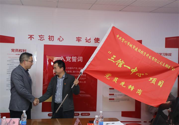 在活動上,蘭乾雄宣布成立“三館一中心”項目黨員先鋒崗,并舉行了現場授旗儀式和黨員先鋒崗承諾簽名,楊邦樞代表城投公司與施工單位、監理單位代表共同簽訂了《“清廉工地”廉潔共建承諾書》。
