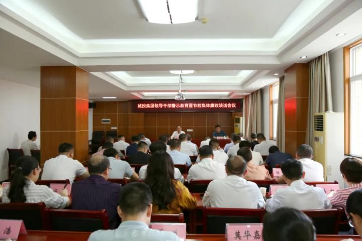 發布時間:2024-04-28 作者:文字:朱瑞民 圖片:胡博文 來源: 審核:葉茂桃 吳姍為深入開展入企第一課,4月28日,城投集團黨委召開集團領導干部警示教育暨節前集體廉政談話會,打好廉潔自律“預防針”。城投集團黨委書記、董事長黃俊出席會議并作集體廉政談話。集團黨委委員、紀委書記盧顯佳主持會議。