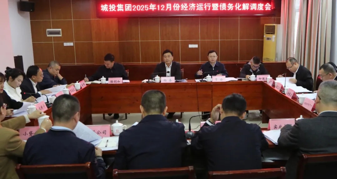 12月12日下午,城投集團召開2025年12月份經濟運行暨債務化解調度會,傳達學習全市經濟發展調度會議精神,全面分析總結當前集團經濟運行情況,安排部署收官攻堅重點任務。集團黨委書記、董事長(提名)楊喜出席會議并講話,集團黨委副書記、總經理常瑜主持會議。